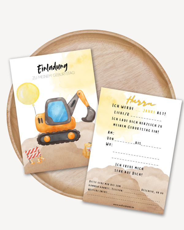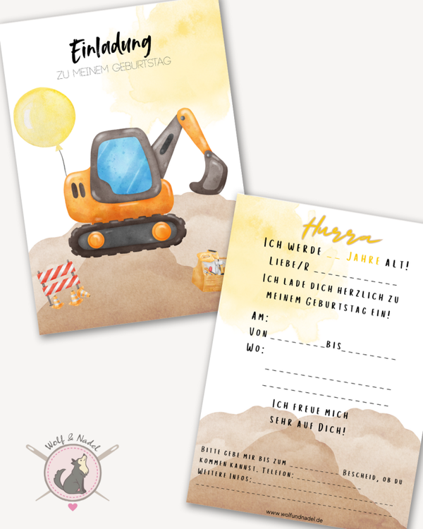 Einladung Kindergeburtstag Baustelle | A6 Karte mit Umschlag | Vorgedruckt & beschriftbar