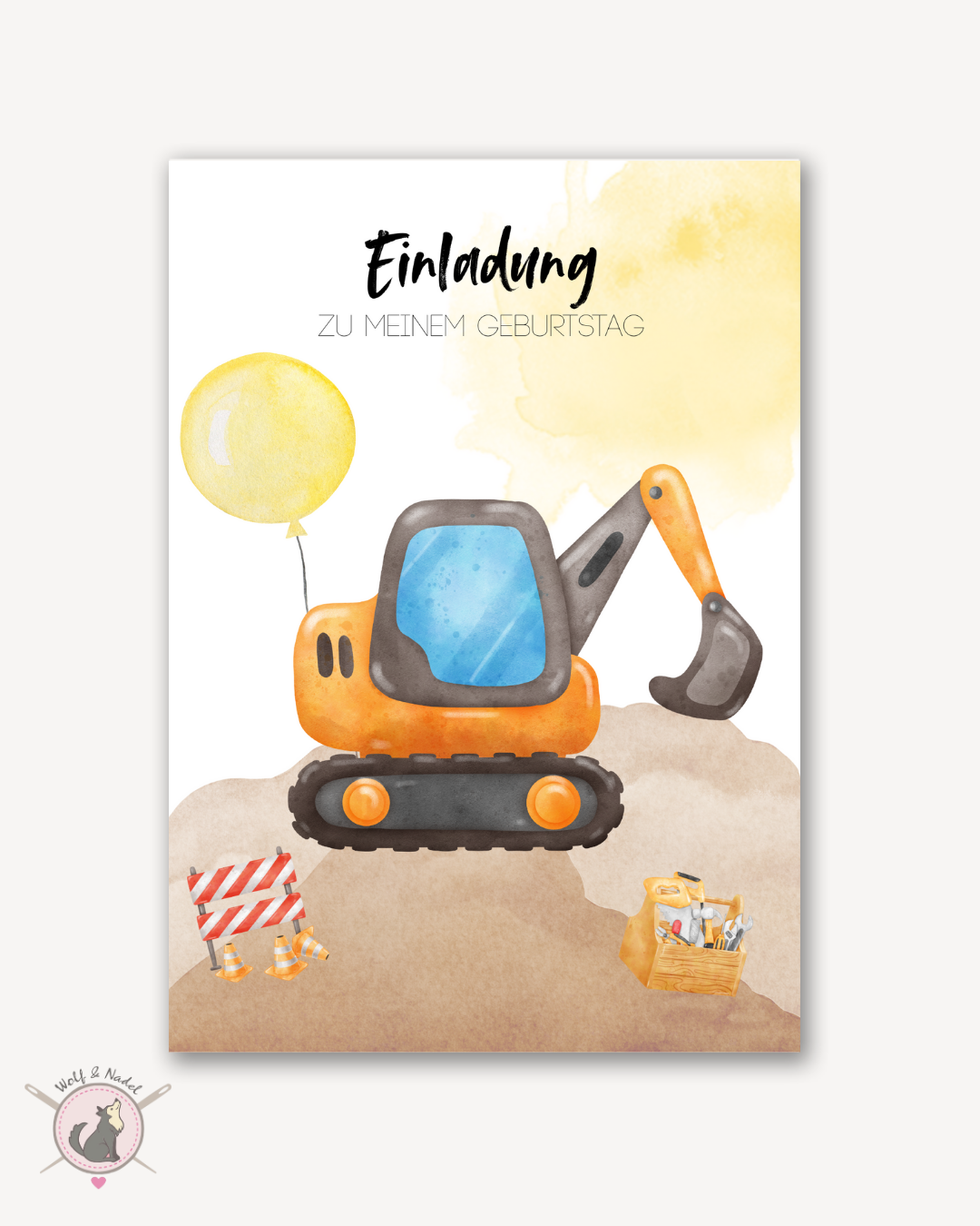 Mit dieser coolen Einladungskarte im Baustellen-Design wird der nächste Kindergeburtstag zum echten Baustellen-Abenteuer! Perfekt für alle kleinen Baggerfahrer, Bauarbeiter und Baustellenfans, die einen unvergesslichen Geburtstag feiern möchten.