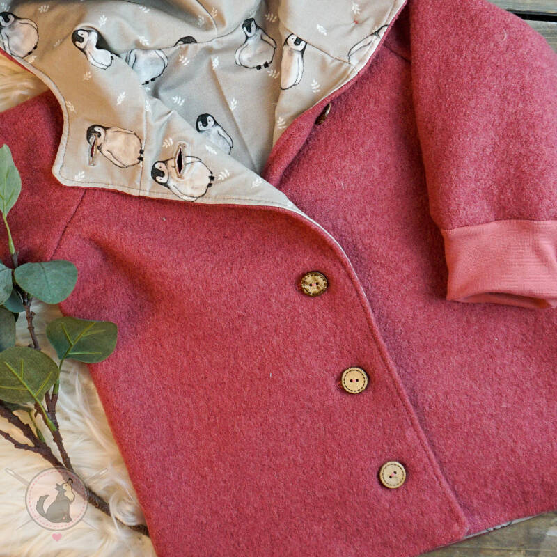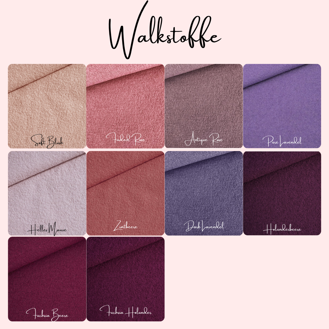 Ich fertige für dich ganz individuell deine Wunsch-Walkjacke an. Das heißt, du kannst selbst entscheiden, welchen Stoff, welche Farben und welche Knöpfe du möchtest. Die Bündchen wähle ich passend zu deiner Auswahl aus.