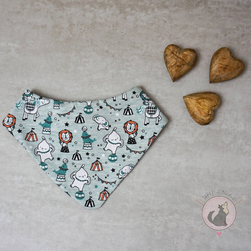 Die Halstücher können mit einem Unistoff auf der Rückseite auch beidseitig benutzt werden.