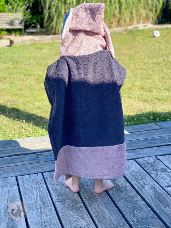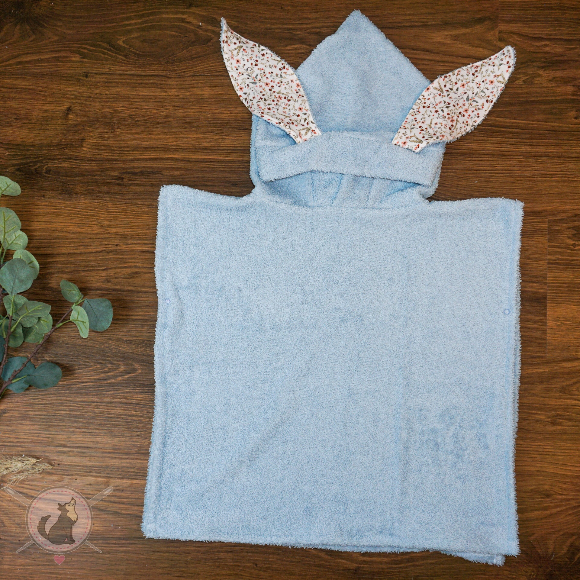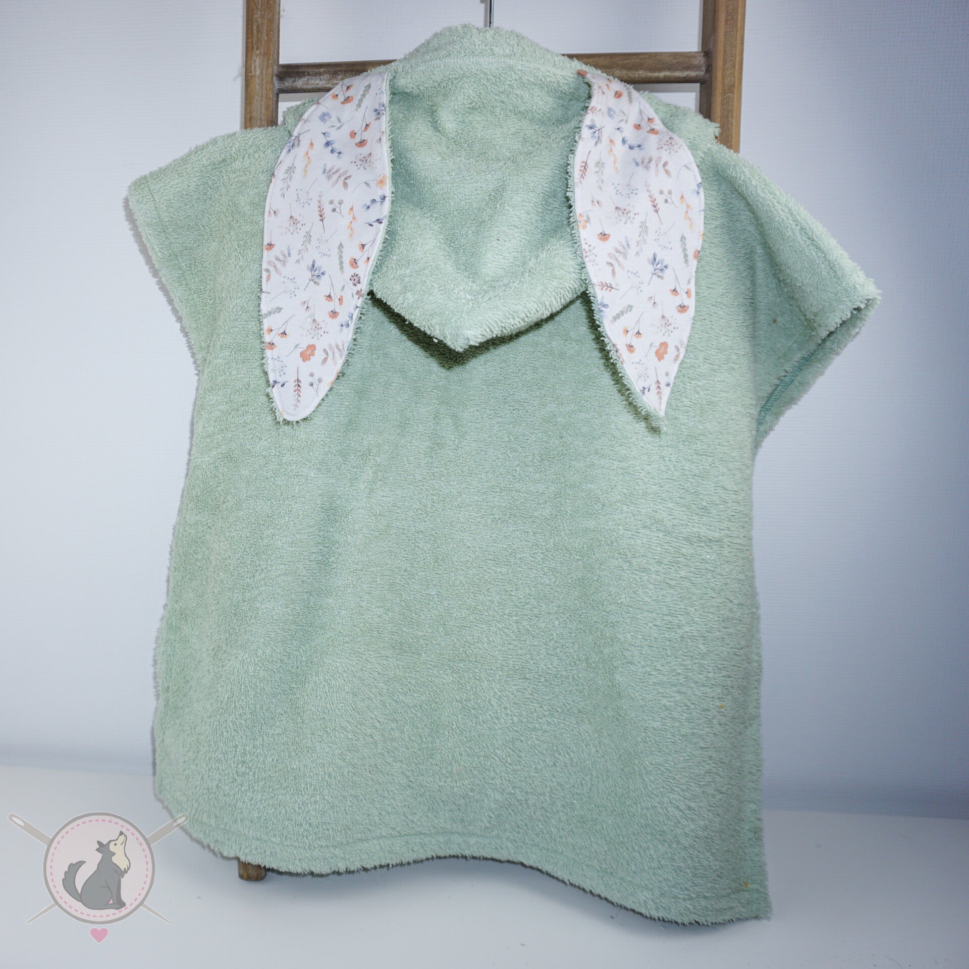 Toller Badeponcho ganz nach deinen Wünschen genäht. Den Badeponcho gibt es in zwei Größen Größe 1 für Babys und Kinder bis 100cm und Größe 2 für Kinder ab 100 cm. An der Seite finet ihr jeweils einen Druckknopf um die Ärmel zu schließen. Der Poncho kann auch ohne Hasenohren gewählt werden.