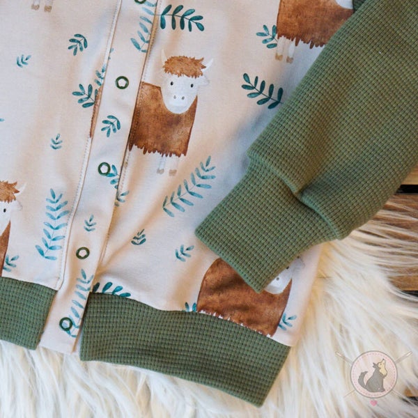 Du kannst die Jacke aus Sweatstoffen und/oder Waffeljersey zusammenstellen.
