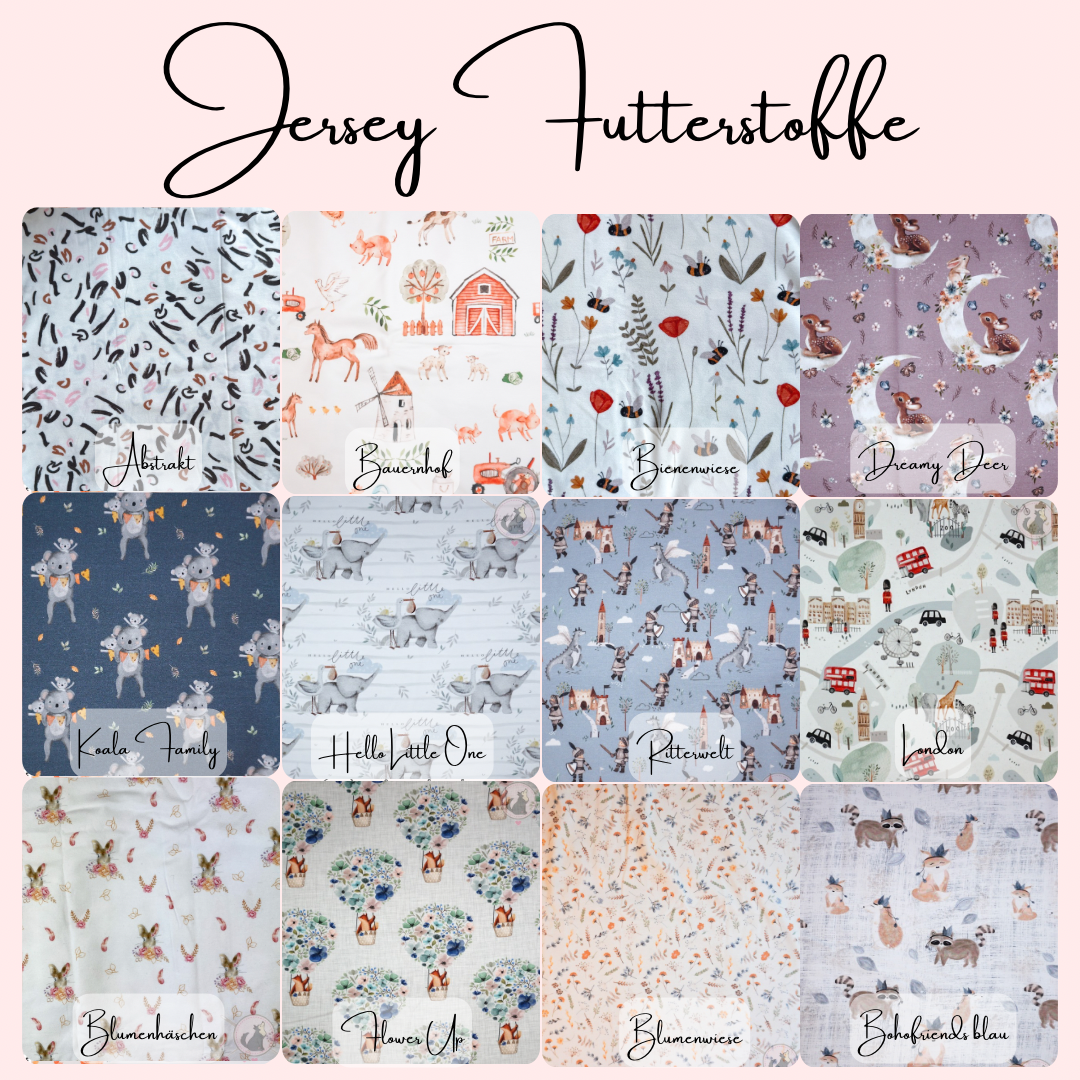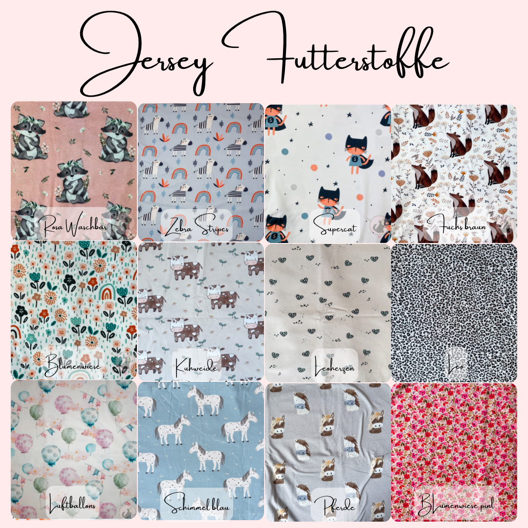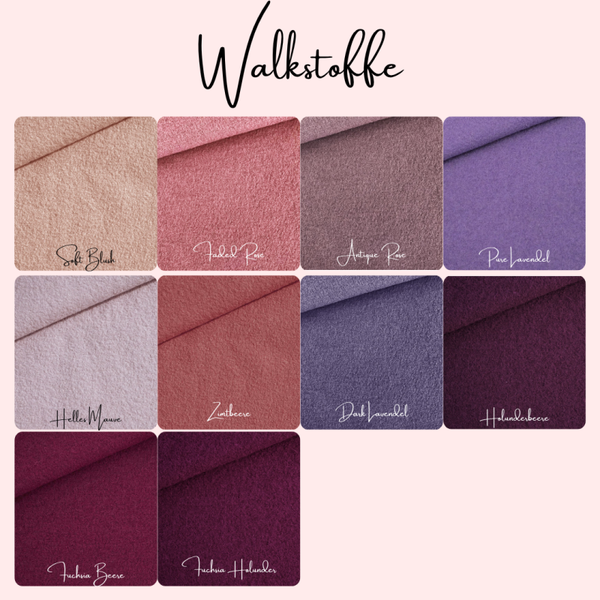 Da ich den Walkstoff nicht auf Vorrat hier habe bestelle ich diesen direkt nach Eingang deiner Bestellung für deinen Wunschoverall. Daher ist es auch möglich, dass ich dir einen anderen Jersey- oder Sweatstoff bestellen kann, falls unter den vorhanden Stoffen nicht der richtige für dich dabei ist.