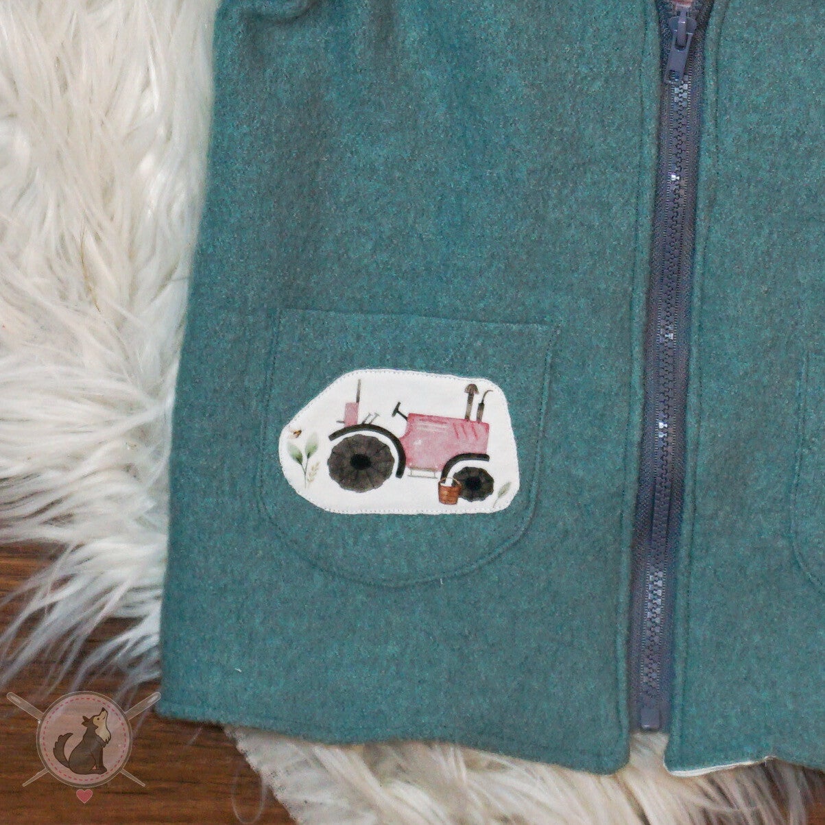 Ich fertige für dich ganz individuell deine Wunsch-Walkjacke an. Das heißt, du kannst selbst entscheiden, welchen Stoff, welche Farben und welche Knöpfe du möchtest. Die Bündchen wähle ich passend zu deiner Auswahl aus.