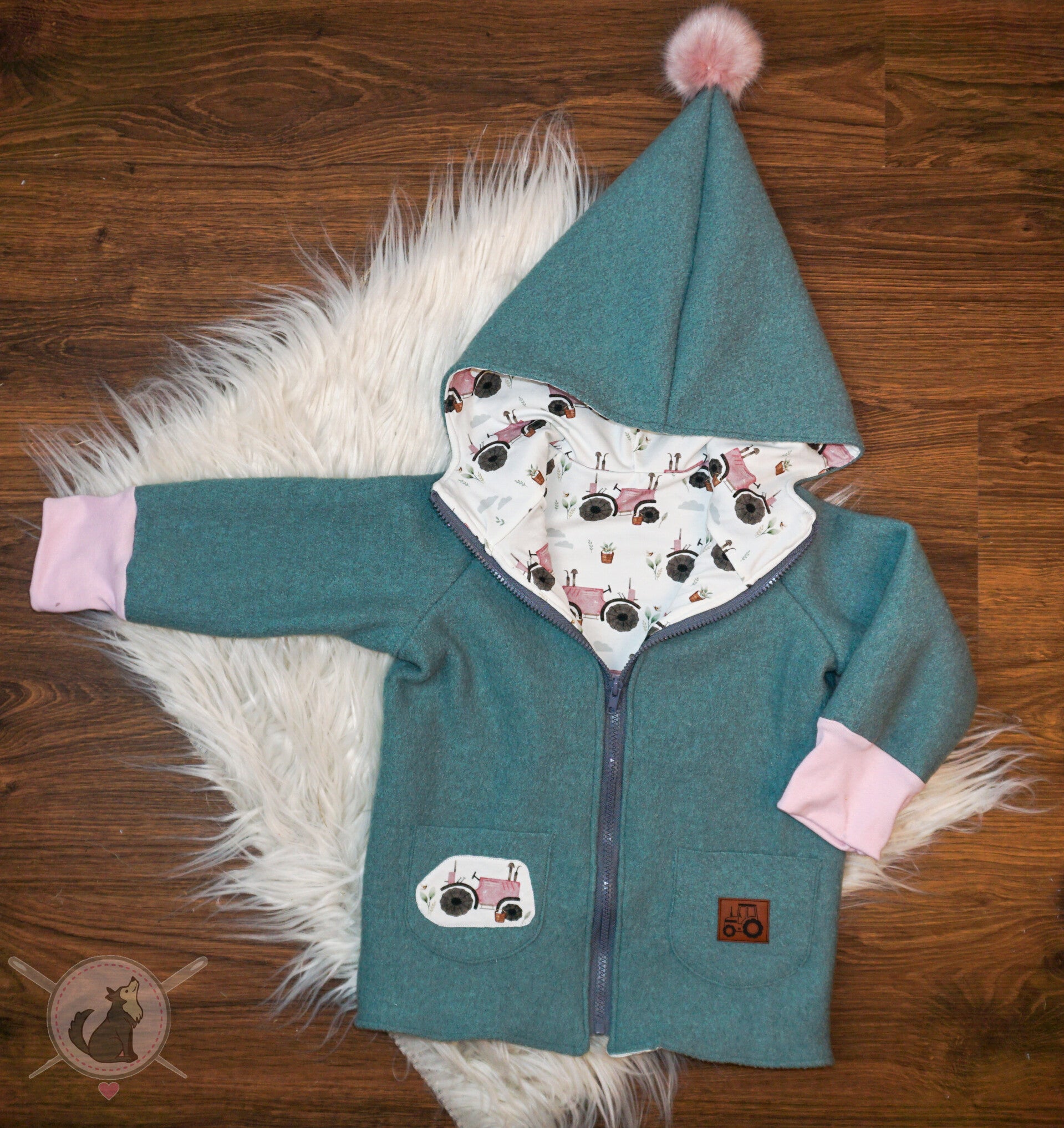 Die Jacke kann auch ohne Bündchen gewählt werden oder auch mit Umschlagärmeln so haben gerade die kleinen die noch im Kinderwagen liegen oder getragen werden immer warme Händchen.